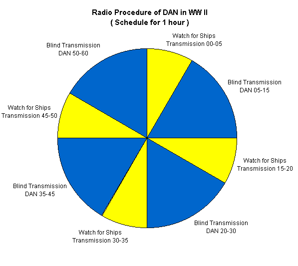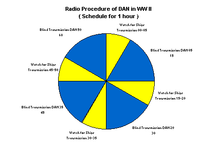 In addition, the radio personnel of the auxiliary cruisers were given detached duty to instruct them about the use of the plans and transmission procedures. Shortly before running out the first auxiliary cruiser, the OKM decided on short notice to change the transmission procedure to zero-beat procedures, usual for the navy. This procedure had the disadvantage that nearly every ship contacting Norddeich Radio could be located by sometimes six or more hostile direction-finding sites. In addition, it permitted the hostile observers to determine frequency and transmission time.