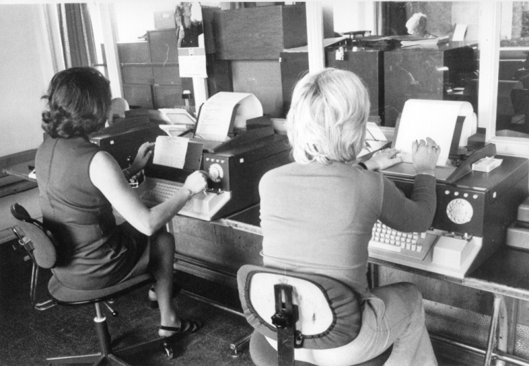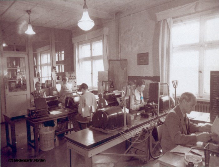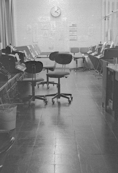 Teletype Positions On the right side the Super Visor. Photo from 1955 |