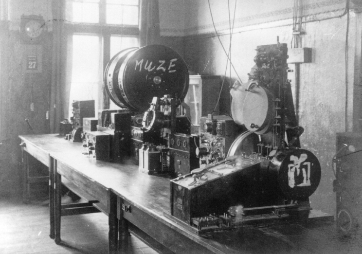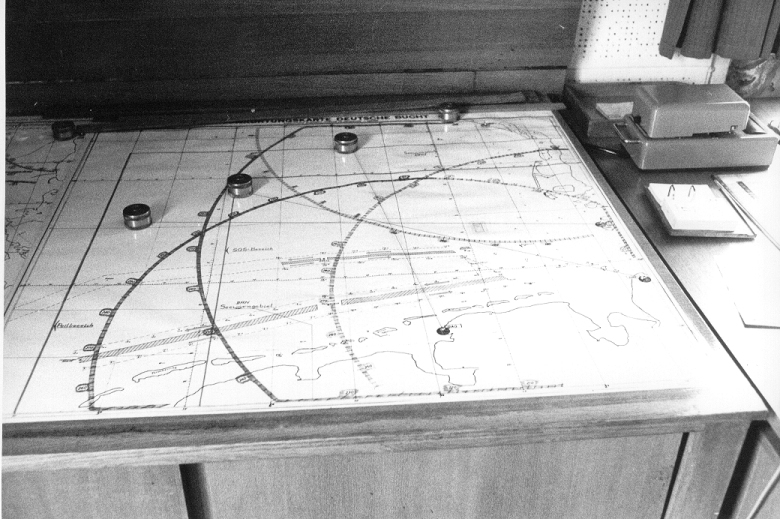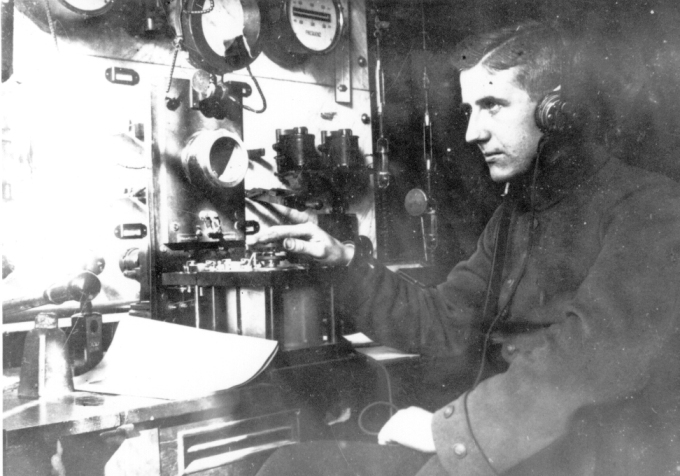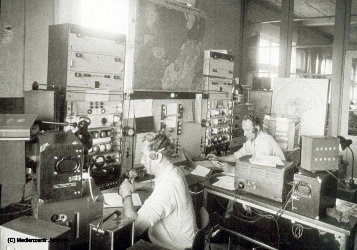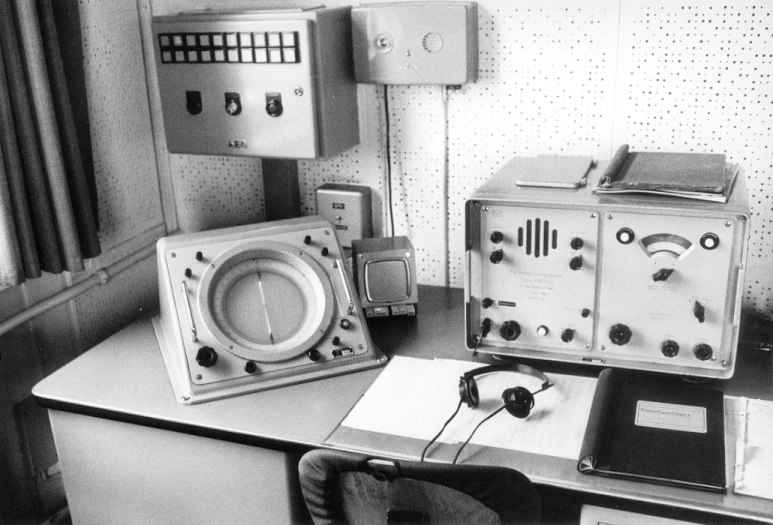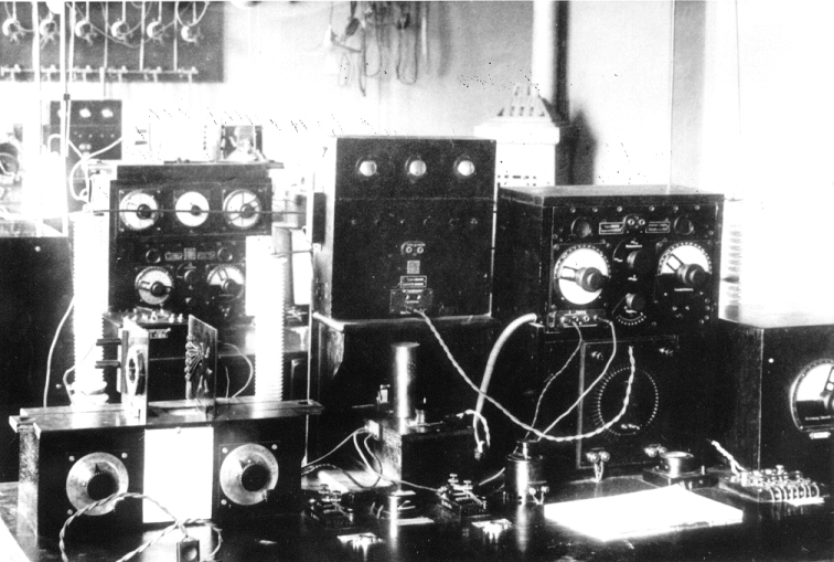 Coastal Telephony Position On the right side the amplifiers for the telephone lines and receiving antennas. Photo from 1951 |