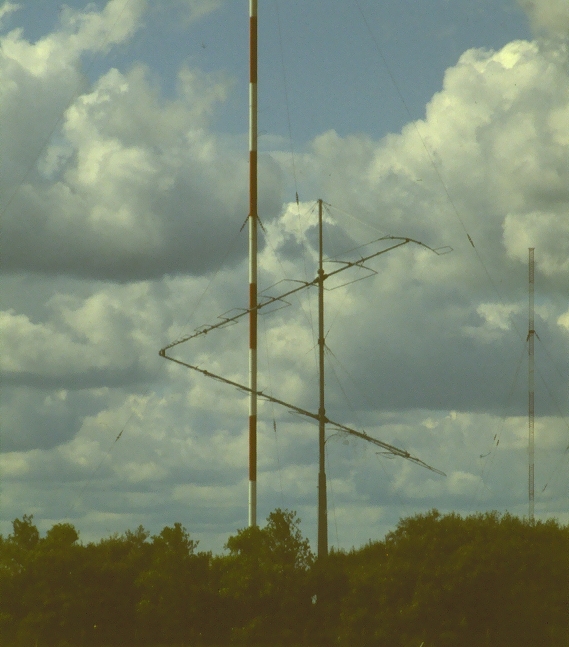 Links eine Reusenantenne für den Grenz- und Kurzwellenbereich |