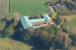 The building of the transmitter station, view from 132 m antenna mast of the 500-kHz-MF Transmitter |