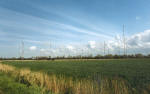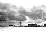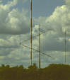 Left the 132 m high mast for 500 kHZ, in the middle the "LP3" antenna, directed 270 degress to the North Atlantic and U.S.A. East Coast. On the right one of the several MF transmitting antennas. |